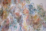 Paper has been painted on both sides with scribble-type routes drawn in first and then the spaces between lines have come out. The work is a visual representation of the complexities of roads and highways, overpasses and underpasses. The title also refers to the artery systems within our bodies.