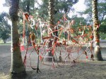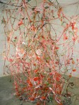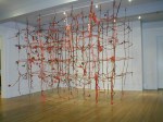 Red Field I, II, III and IV are a series of installations completed between 2001-2002. They began with the idea of breaking apart a free-standing sculpture (Horticulture) and creating a structure that filled a space. Red Field I was done in a room at the University of Victoria and as I was constructing this piece, I imagined that I was making a three-dimensional action painting in the tradition of Jackson Pollock with the four walls forming a framing device similar to the four edges of the canvas. Red Field II is made in a section of one of the rooms in the Burnaby Art Gallery. This structure relied on a more formal method of construction to create a grid like formation, inspired by an Eva Hesse piece I once saw. Red Field III (no images) is a piece done in Surrey as part of the BC Festival of the Arts and its construction was based on the decisions made in Red Field I. Red Field IV was made as part of an outdoor installation exhibition at LA Mission College just outside of Los Angeles, CA. I chose palm trees as the structures around which I based my installation in that they seemed to exist in that strange place between the natural and the artificial.