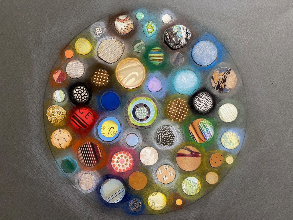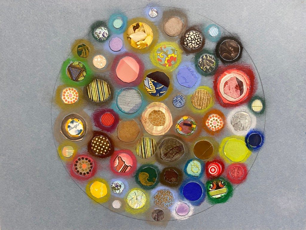 Small Worlds A series of work on pastel paper or board with collage and oil pastels. They represent the idea of micro and macro worlds -microscopic or planetary forms.